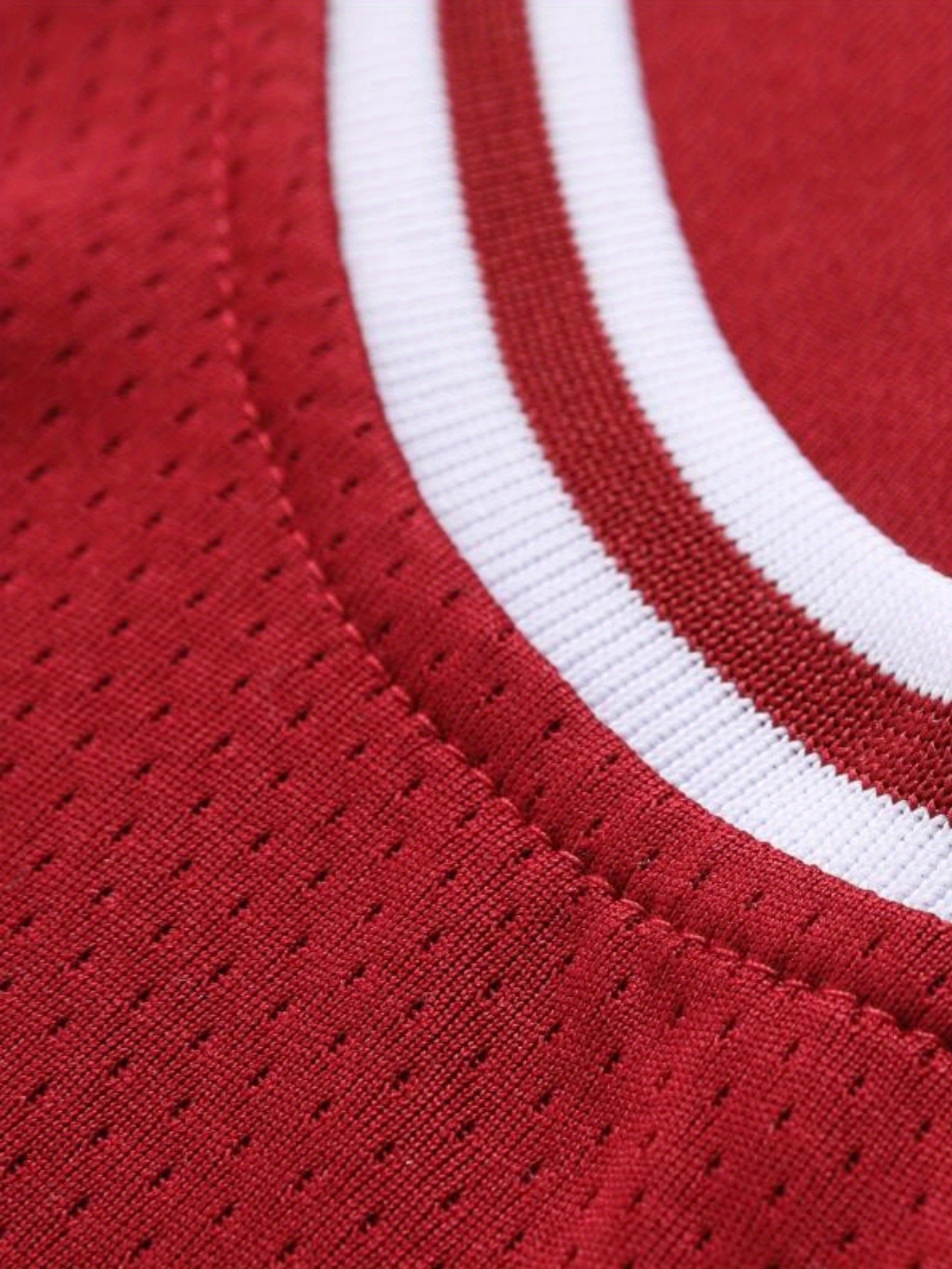 Men'S #33 Red Basketball Jersey, Classic Retro Embroidered Letters, Sleeveless Moisture-Wicking Breathable Vest, Round Neck, Casual Athletic Wear for Training, Running, Outdoor Activities & Team Sport