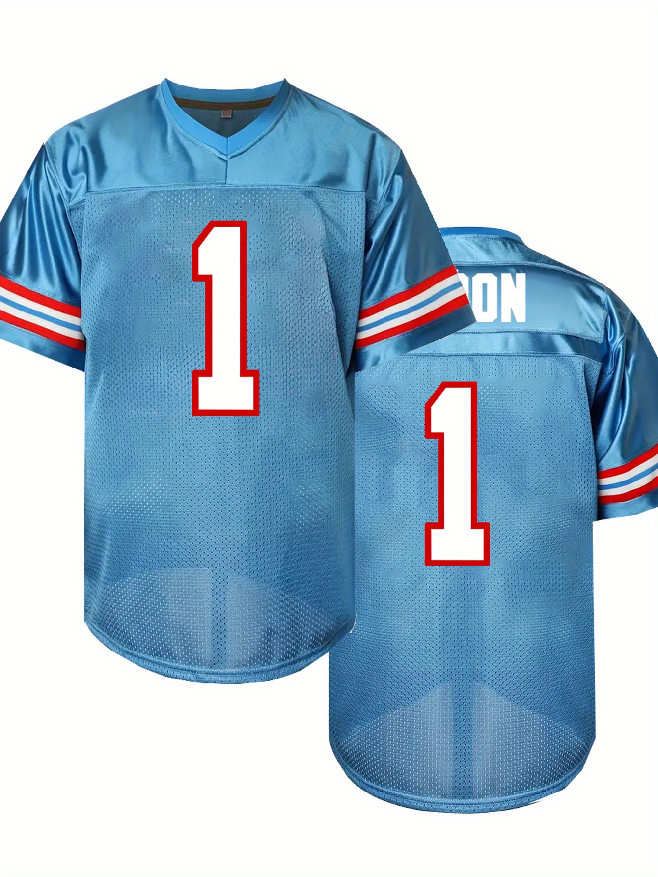 Men'S Moon Blue # 1 American Football Shirt Loose Embroidered Sports, Fashionable, Casual, Street Breathable Rugby Top