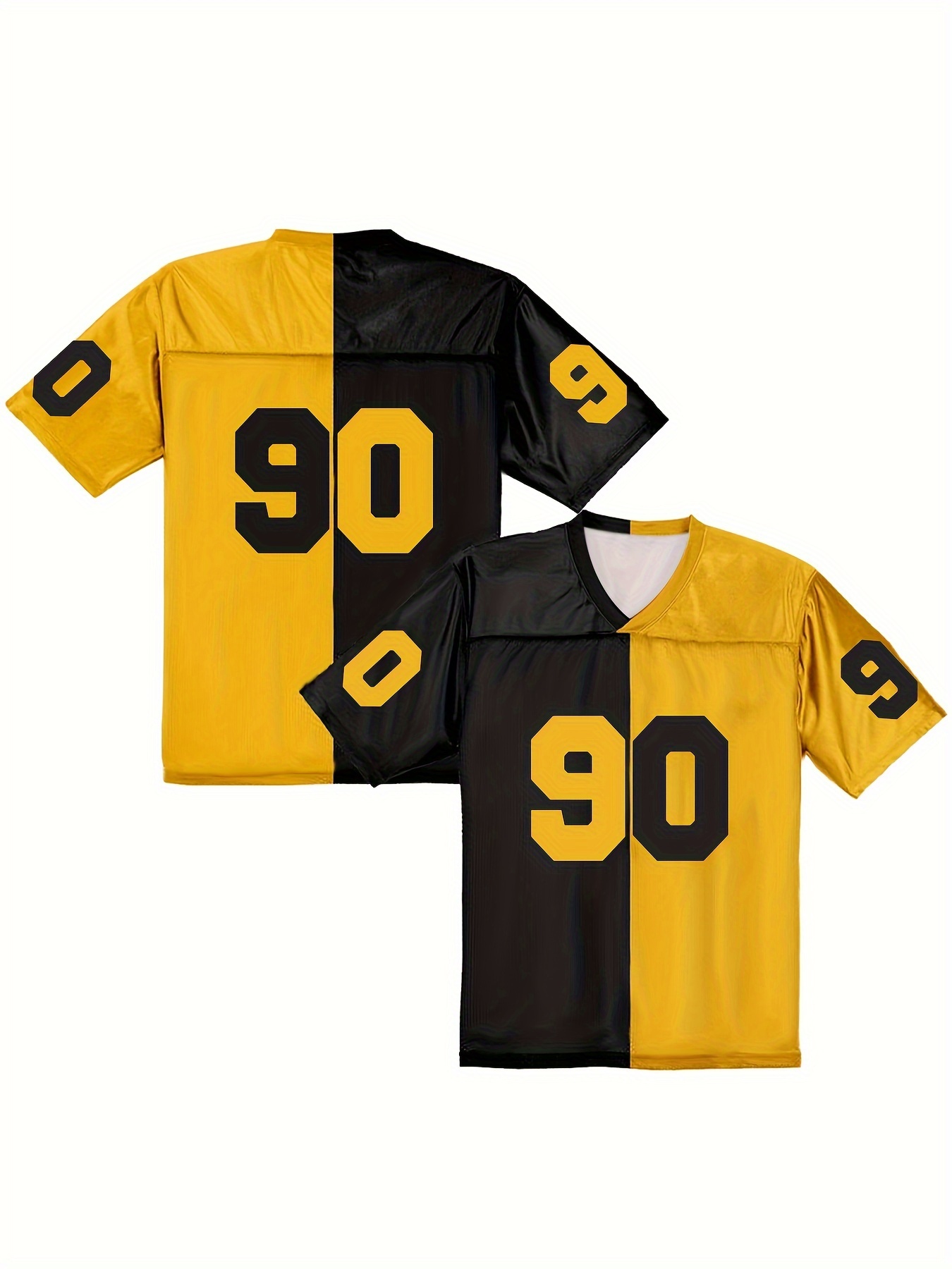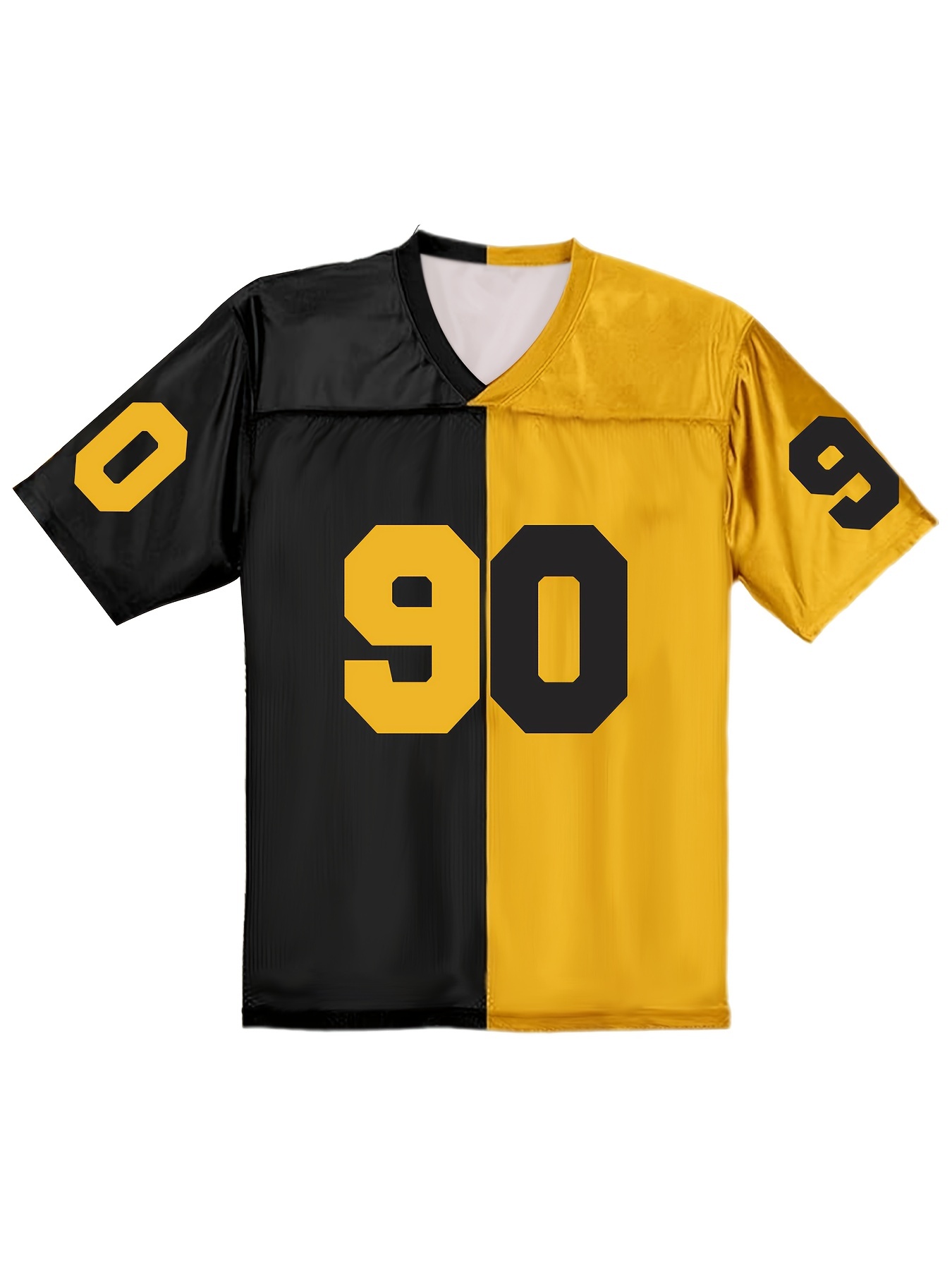 Women's Pittsburgh #90 Polyester Football Jersey T Shirts, Women Yellow And Black Stitching V-Neck Sports Shirt With Slight Stretch, Breathable Casual Knit Fabric For All Seasons, Loose Fit Adult & Teen, Fans Gift Women Youth