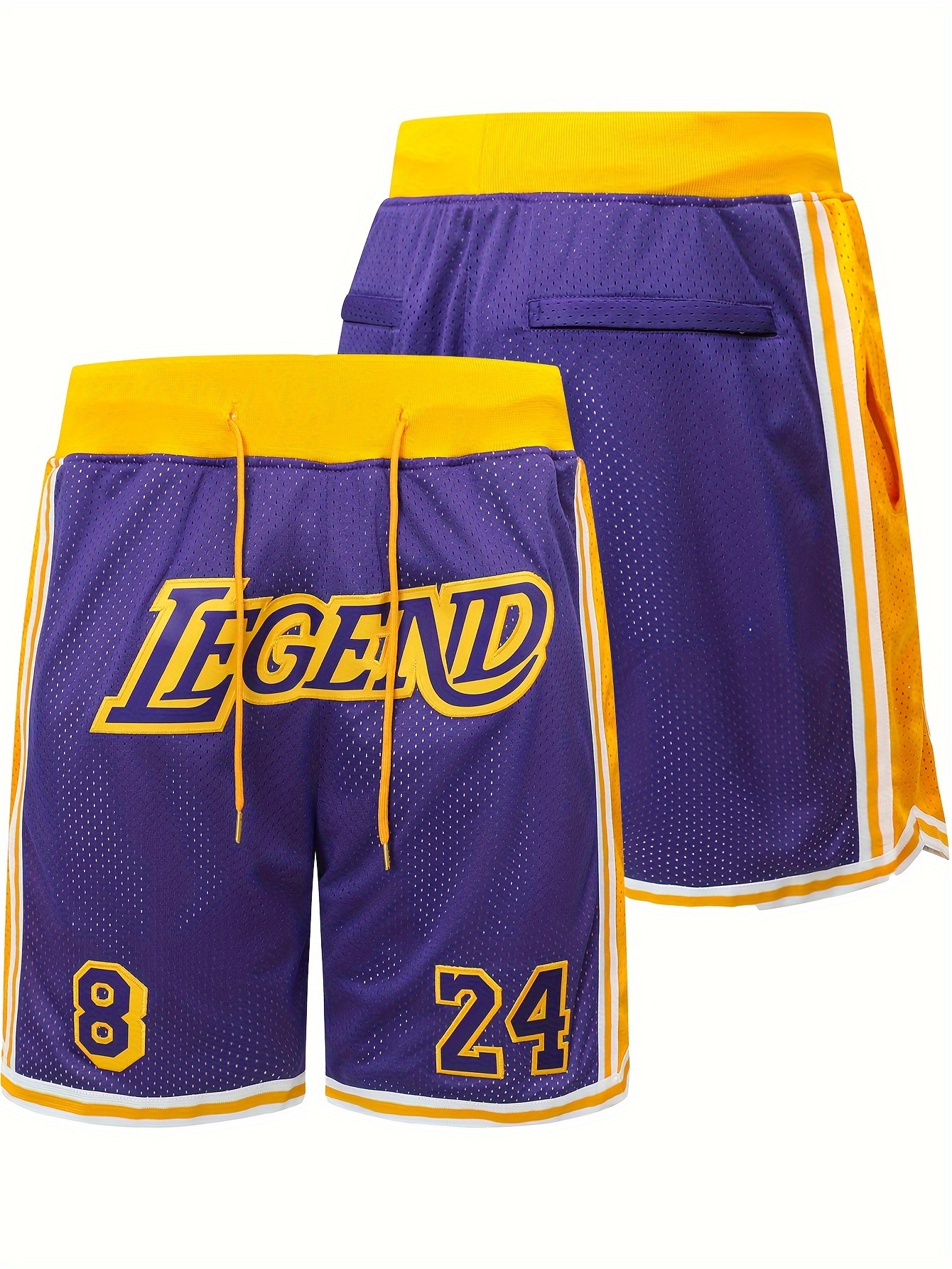 Breathable Purple Basketball Shorts - Men's #8-24 Classic Letter Embroidery Design Button Short Sleeve Shirt for Training and Competition