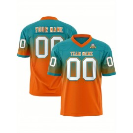 Customizable Plus Size Football Jersey - Personalized Name & Number, Vibrant Orange & Blue Gradient Design, V-Neck Short Sleeve, Breathable Summer Sports Shirt for Women, Football Jersey, Athletic Wear, Sporty Look, Comfortable Fit