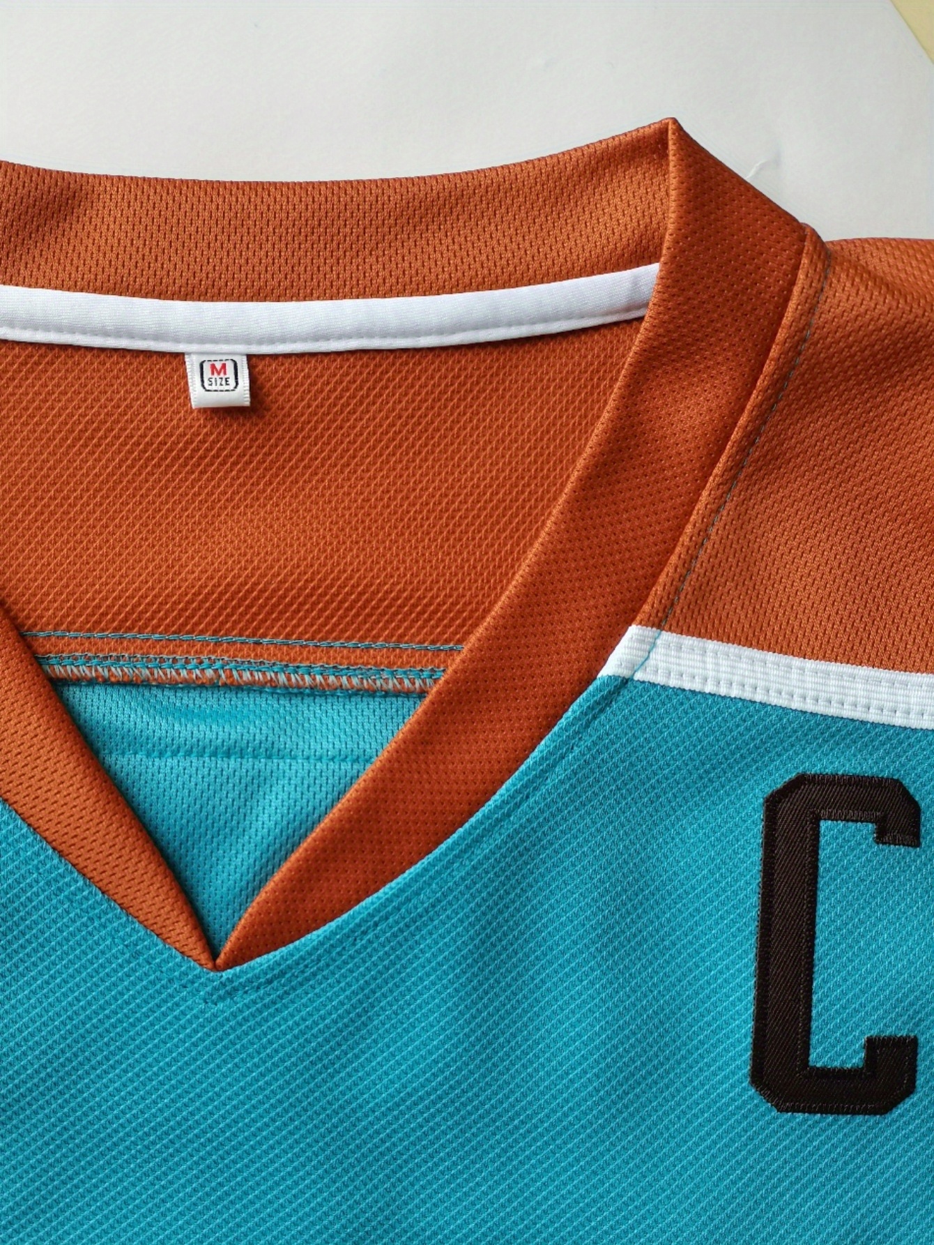 Men's #69 Moon Orchid Ice Hockey Jersey - Teal & Brown Retro Embroidered V-Neck Sweatshirt, Loose Fit, Breathable Polyester for Sports, Streetwear & Casual Outings