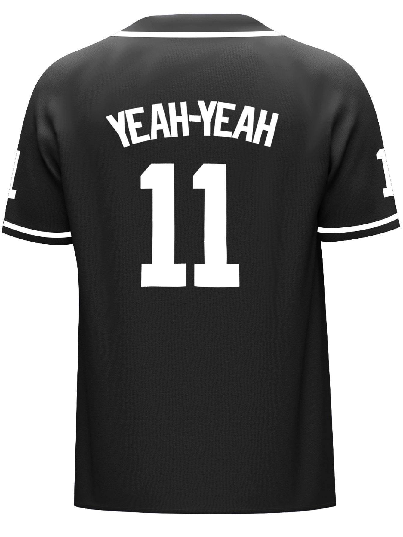 Men's Black #11 Baseball Shirt - Loose Fit V-Neck Embroidered "THE HANDLOT" & "YEAH-YEAH" Design, Breathable Button-Up Sportswear for Streetwear, Outdoor & Casual Wear, All-Season Comfort, Durable Embroidery