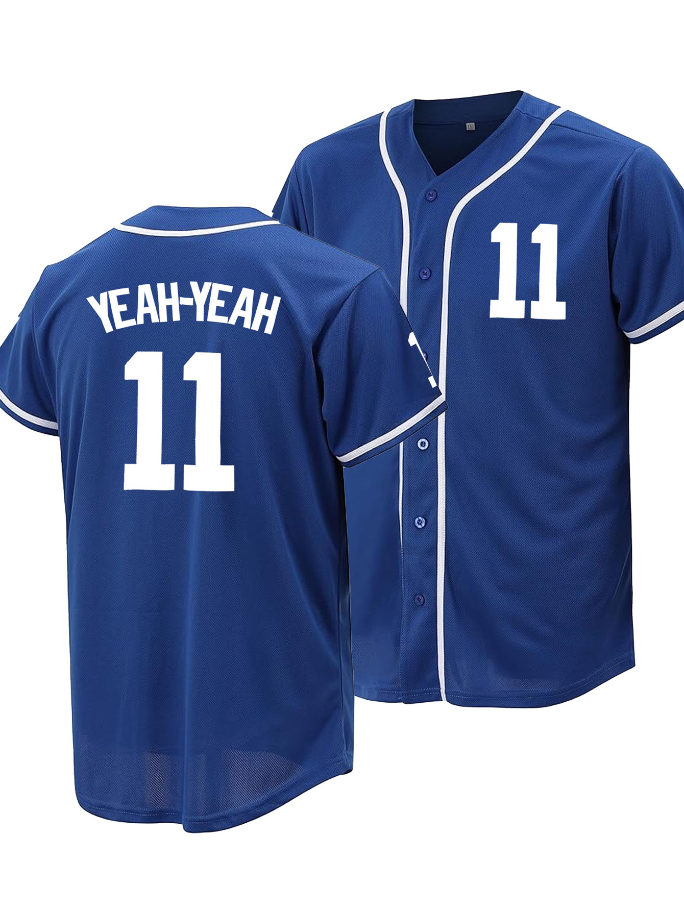 Men'S Blue # 11 Baseball Shirt, Classic Letter Embroidery Design, Button Style Short Sleeved Breathable Shirt, for Training And Competition Use