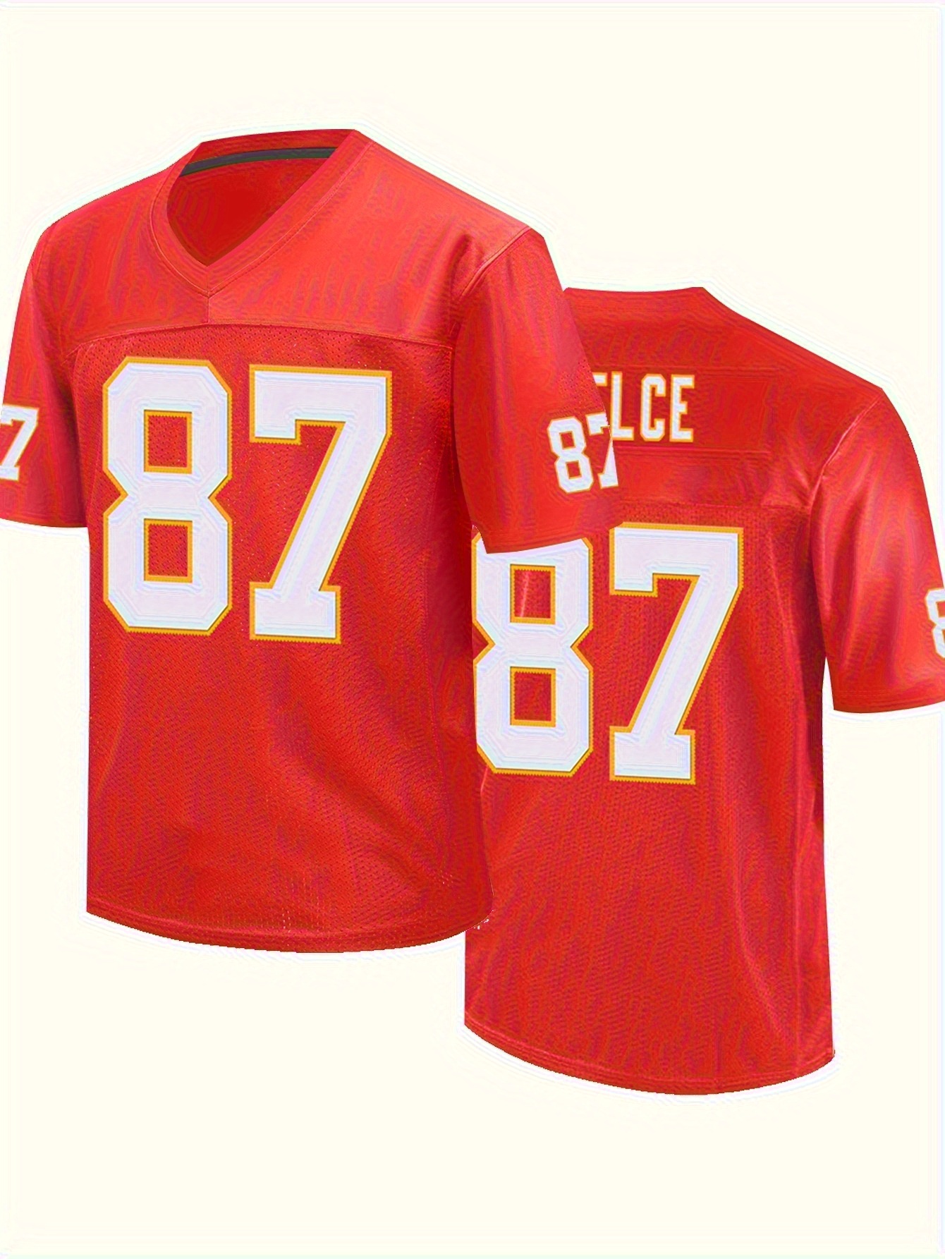 Men'S Red # 87 Breathable Rugby Shirt, Sports V-neck Short Sleeve Training Match Uniform, Embroidered American Football Shirt