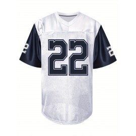 Men's White #22 American Football Jersey - Breathable Loose Fit V-Neck with Embroidered Lettering, All-Season Casual & Sports Wear, Machine Washable, Game Day Outfit, Sporty Style, Comfortable Material, Team Apparel, Team Players