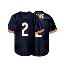 SheLucki Men'S Deep Blue #2 American Football Jersey, Loose Fit, Breathable Polyester, V-Neck, Embroidered Sports Top, Casual Streetwear for All Seasons