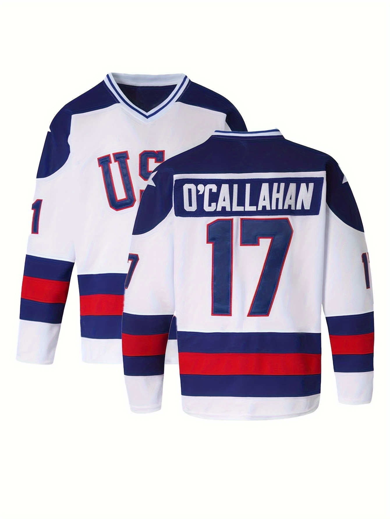 [White #17 Ice Hockey Sweatshirt] Men's White # 17 Ice Hockey Sweatshirt, Loose Embroidered Long Sleeves, Sporty, Fashionable And Casual, Street Breathable