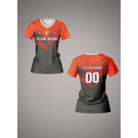 Customizable Women's V-Neck Soccer Jersey - Personalized Name & Number, Breathable Quick-Dry Polyester Sports Top for Team Training, Fitness & Casual Wear