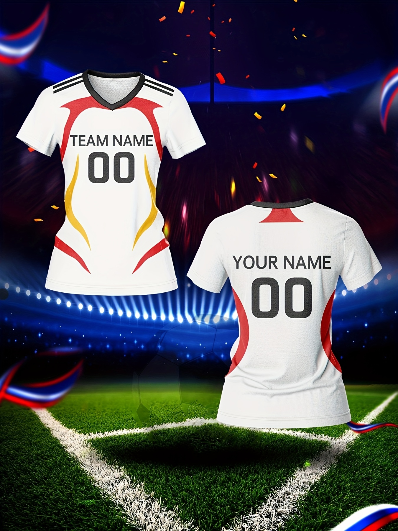 Women's V-Neck Soccer Jersey | Customizable Name & Number | Breathable Polyester | Quick-Dry, Moisture-Wicking | Multi-Color Design for Training and Casual Wear | Spring/Summer/Autumn Sports Apparel