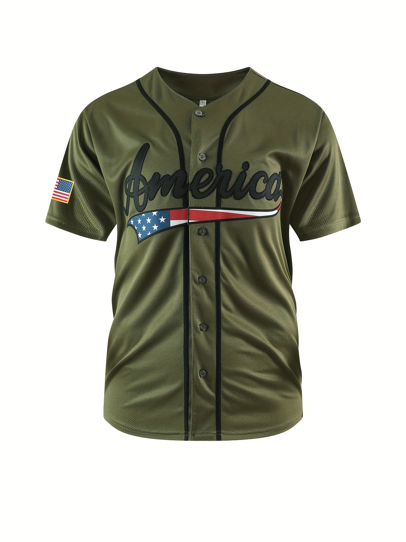 Men's #1 Army Green Baseball Jersey, Breathable Polyester, V-Neck with Button-Up Closure - Sporty & Casual Style for Everyday, Parties, Training & Streetwear