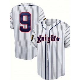 Men's White Striped # 9 Baseball Shirt, Loose Embroidered Sports, Fashionable And Casual, Street Breathable