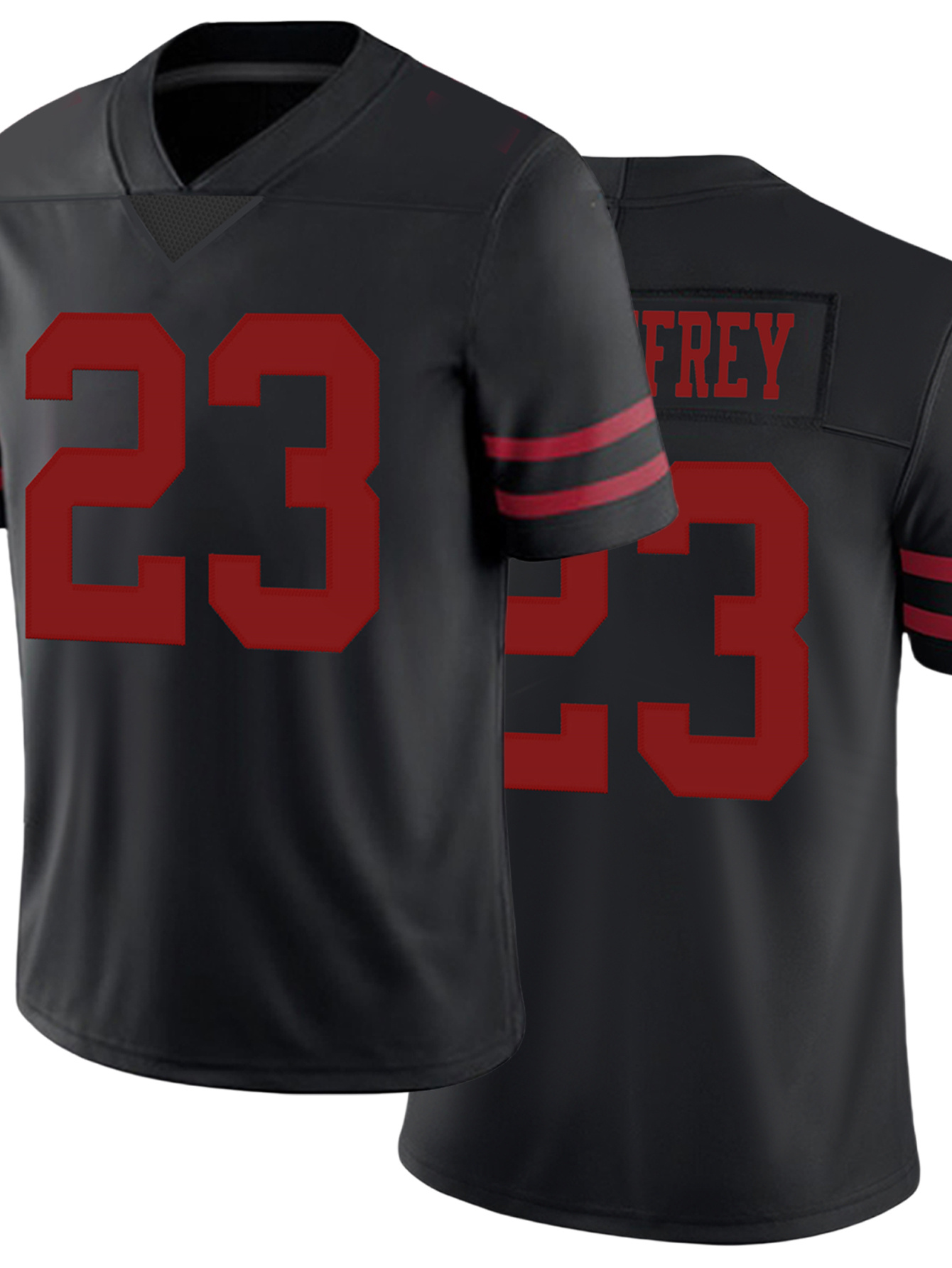 Men's Black #23 American Football Jersey - Breathable Loose Fit V-Neck with Embroidered FREY Lettering, All-Season Casual Streetwear for Sports & Outdoor Activities, Comfortable Fit