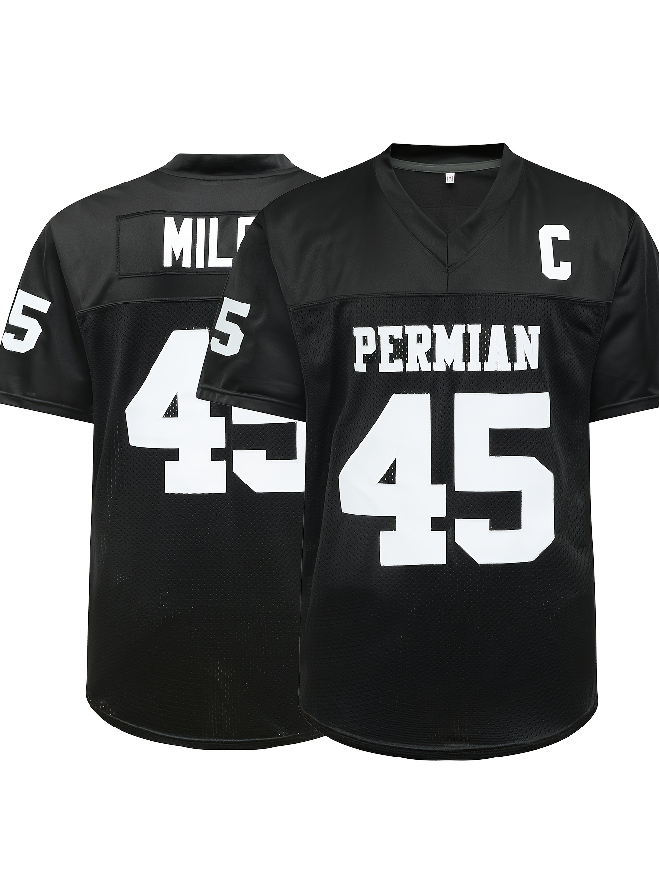 Men'S Black # 45 Breathable Rugby Jersey, Sports V-neck Short Sleeved Uniform For Training And Matches, Embroidered American Football Shirt
