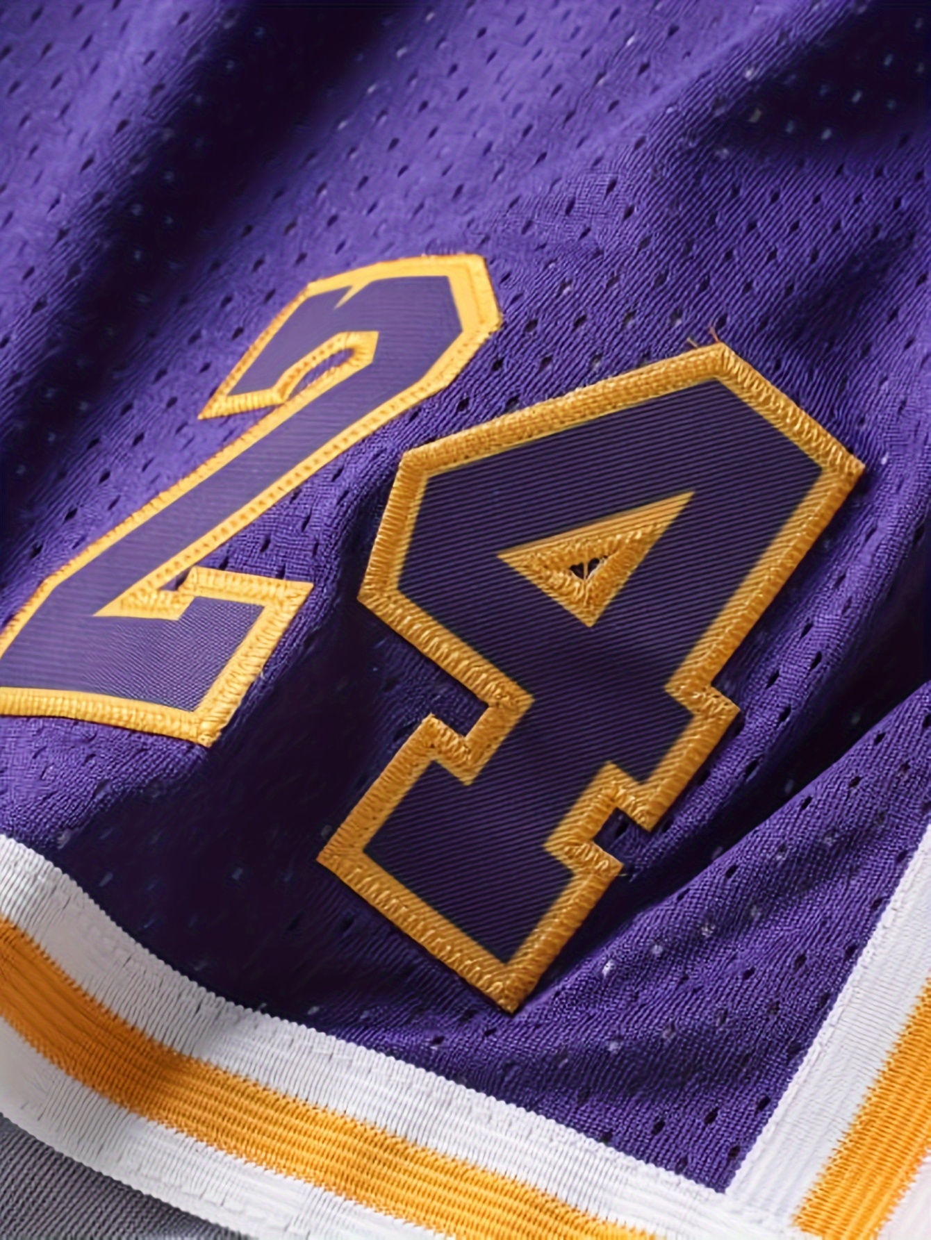 Men's Purple # 8-24 Basketball Shorts, Classic Letter Embroidery Design, Breathable Button Short Sleeve Shirt, Suitable for Training and Competition