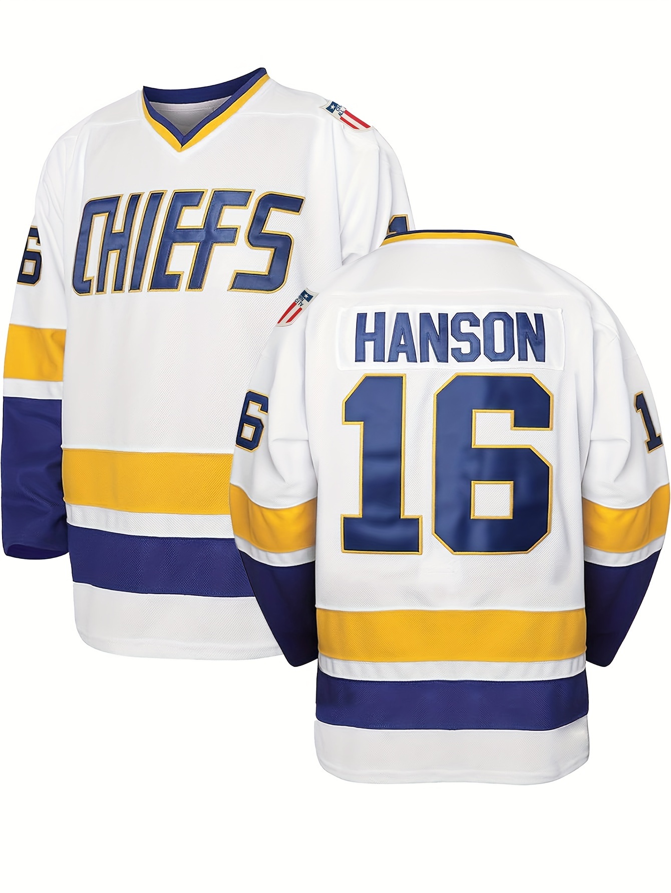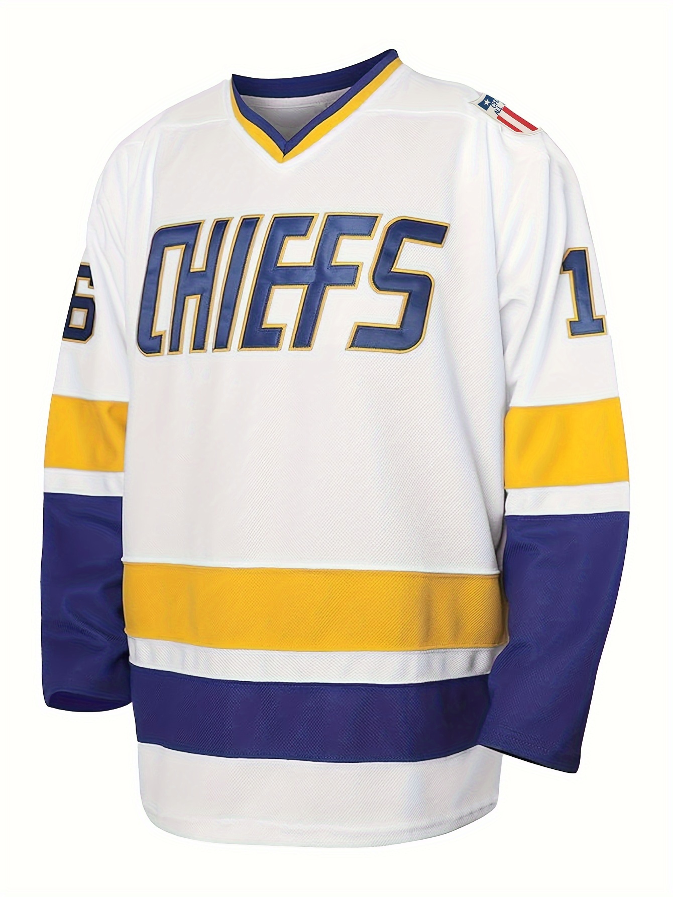 Men's White #16 Ice Hockey Sweatshirt - Loose Fit V-Neck Long Sleeve with Embroidered Lettering, Breathable Sporty Casual Streetwear for All-Season Outdoor Activities & Training, Sports Fan Apparel | Durable Sportswear