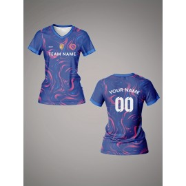 Customizable Women's V-Neck Soccer Jersey - Personalized Name & Number, Breathable Quick-Dry Polyester Sports Top for Team Training, Fitness & Casual Wear